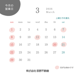 🎎営業日のお知らせ🎎 こんにちは! 最近は気温が二桁の日も多くなり、春を感じますね🌸 これから少しずつ植物たちが色めいてくるのが楽しみです☺️ 3月もよろしくお願いいたします 土曜はご予約優先となります🙇🏼♀️ 事前にご連絡いただけますと確実です! 中古住宅、アパートの内覧は勿論 空き家や土地の売却相談も受け付けております🍂 まずはお気軽にご相談ください🌟